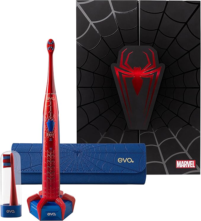 evo SPM-1 Spider-Man Rechargeable Sonic Toothbrush, Marvel Electric Toothbrush for Adults, Marvel Gifts, Soft Toothbrushes for Adults with Toothbrush Timer, Toothbrush Heads, Collector's Edition