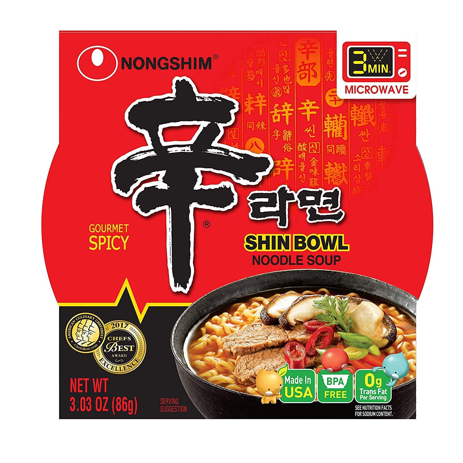 Nongshim Shin Bowl Noodle Soup, Gourmet Spicy, 3.03 Ounce (Pack of 12) (2-Sets)